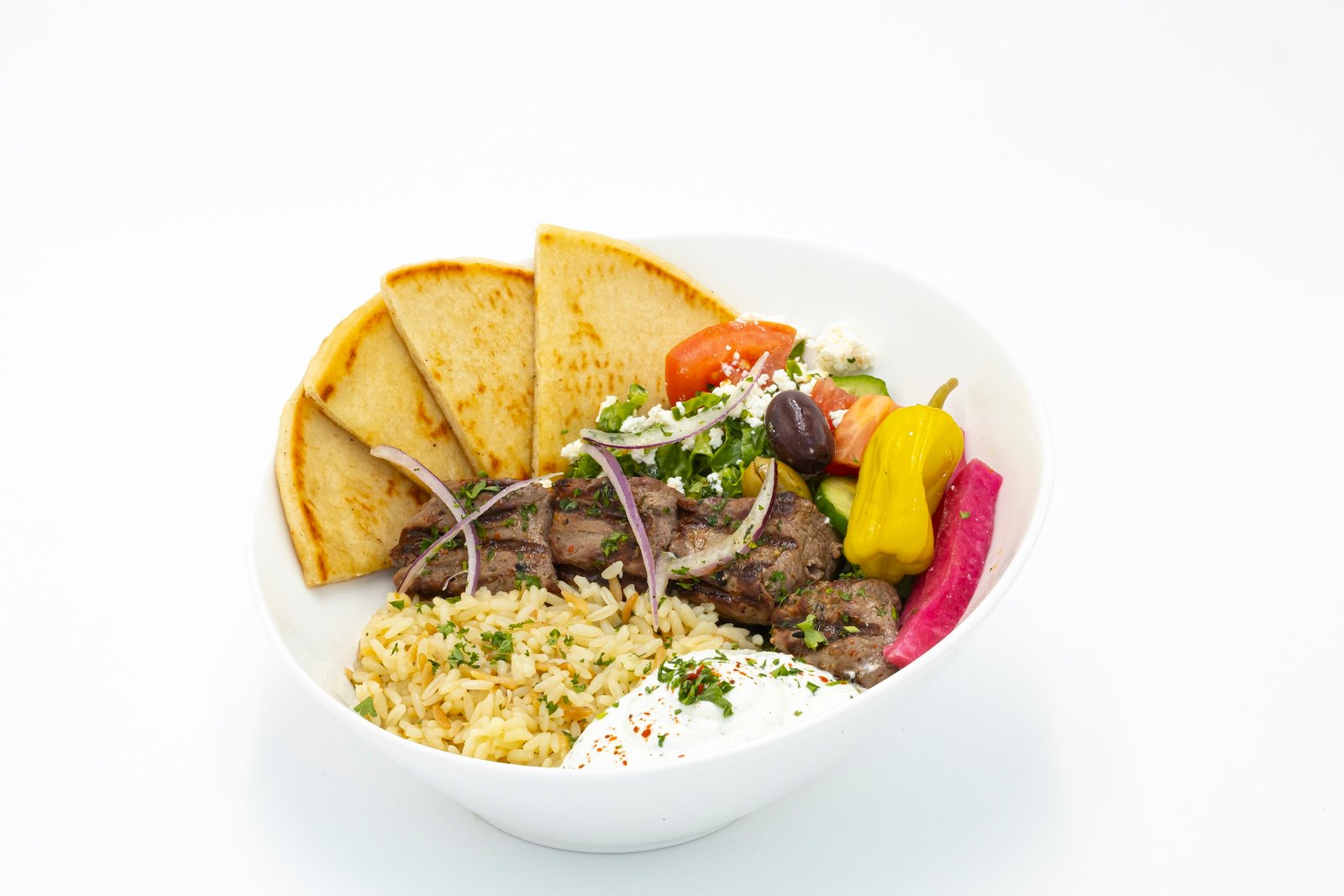 Served with rice, pita bread, side of Tzatziki and your choice of fries or salad
